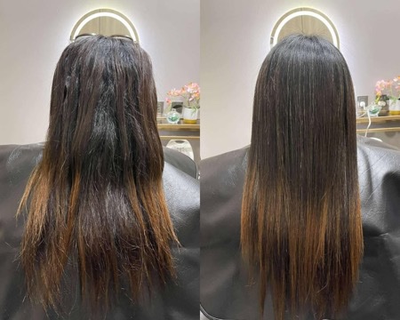 Enjoy silky-smooth, straight hair with extra care! Our Rebond gives your hair long-lasting straightness, while the Brazilian Treatment nourishes and strengthens each strand, leaving it smooth, shiny, and more resilient. The perfect combo for sleek and healthy-looking hair.